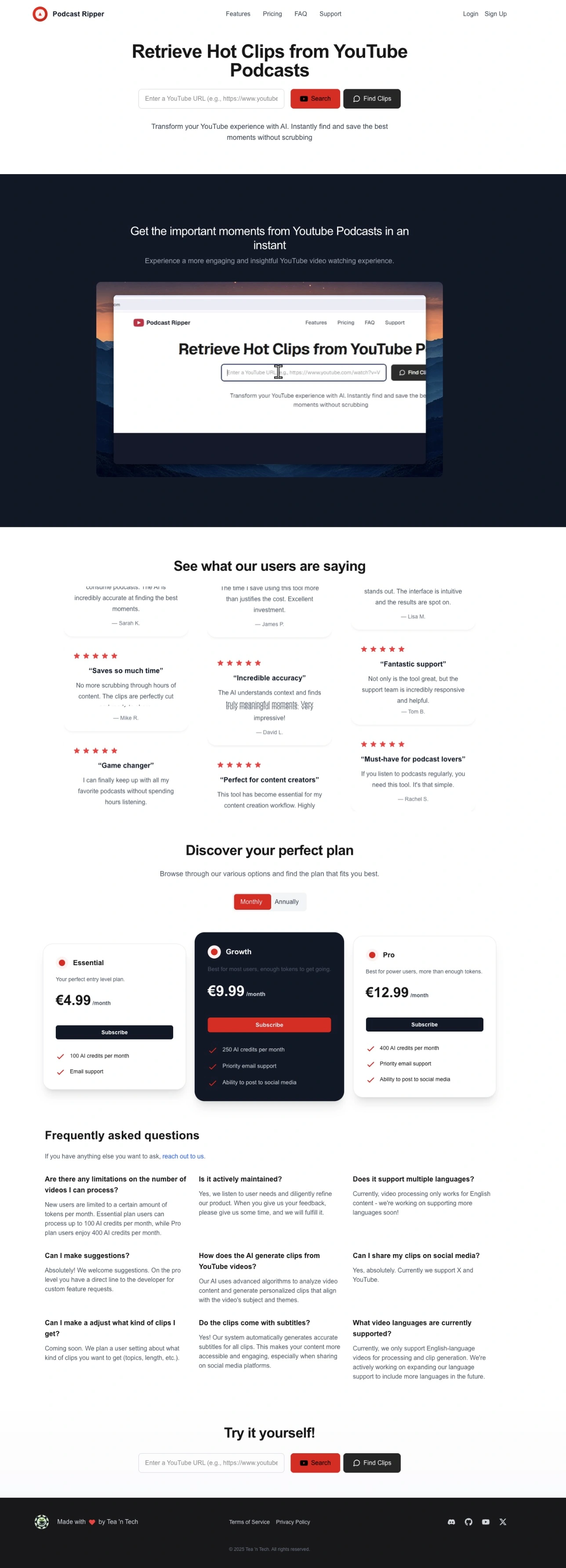 An AI-powered tool that automatically extracts interesting video clips from podcasts and allows you to share them with your friends on social media.